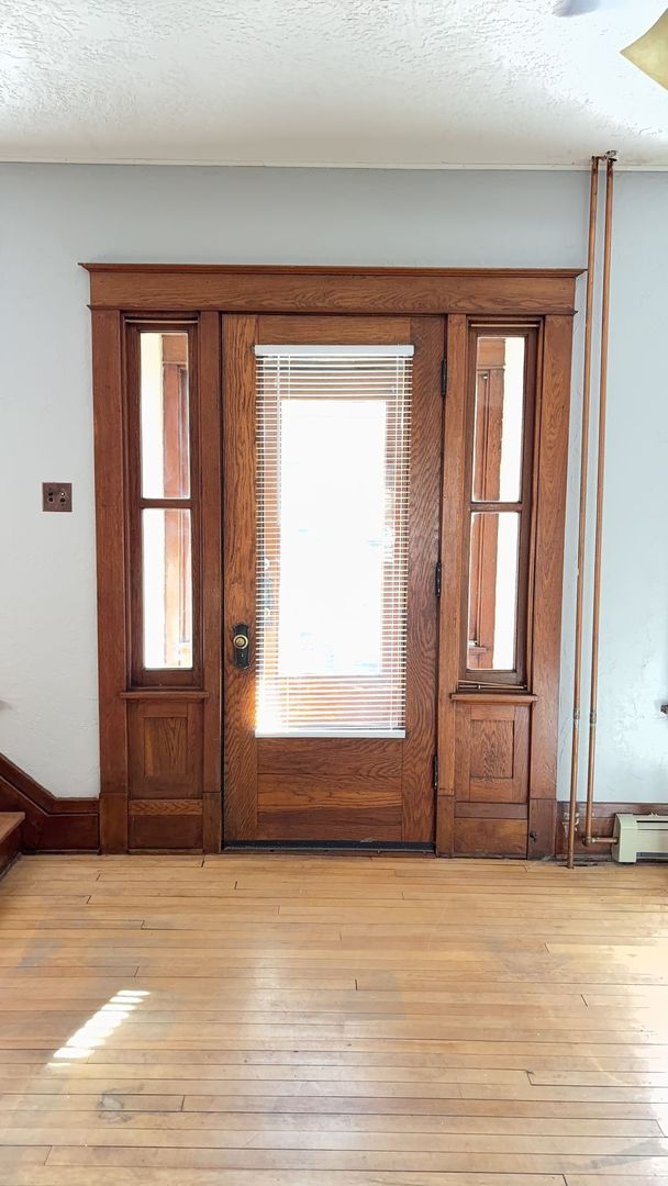This home is a well balanced mix of renovations and upgrades, while preserving much of the original woodwork and historic features. The unit was just fully painted, and new flooring installed in bathroom and kitchen, and hardwood floors are refinished. There is a large backyard, and washer/dryer and additional storage in the unfinished basement. This is a great location, with proximity to bars, restaurants, shopping, and parks, as well as the university, in the historic Lincoln Park neighborhood of Mankato.