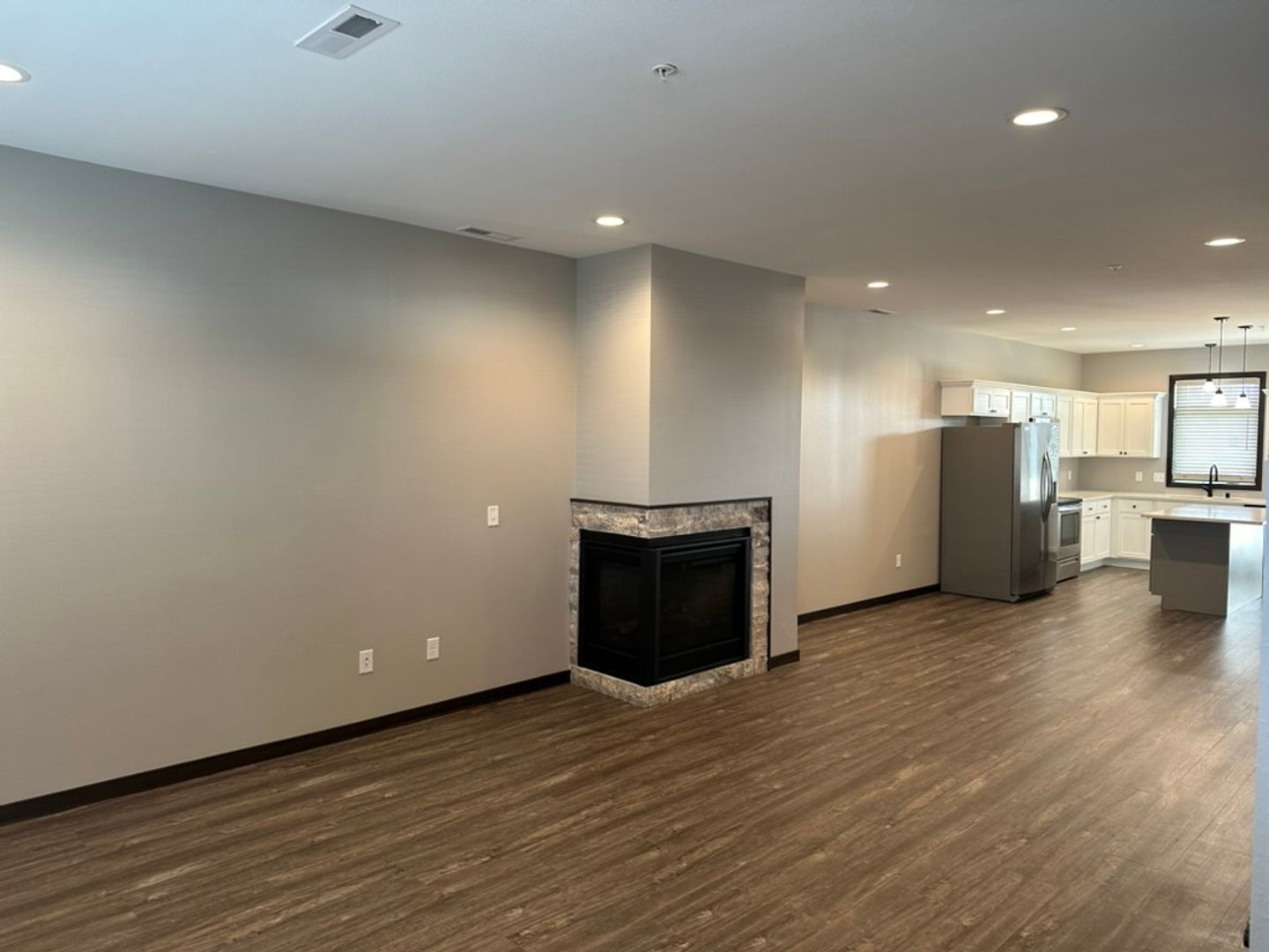 Beautiful 3 bedroom, 2.5 bath townhome! Main level has a spacious living room with a gas fireplace. The main level also features a guest/half bathroom, a beautiful kitchen with stainless steel appliances, center island, and access to the outside patio. There is main floor laundry conveniently located just off the kitchen. The first bedroom is located on the main floor with an en suite bath. The upper level boasts two more bedrooms, separated by a dual entry bathroom with double sinks, tub/shower, and private commode. This home has so many wonderful amenities, including vinyl plank flooring, premium window treatments, abundance of windows and natural light, single attached garage, gas forced air furnace, central air conditioning, air exchanger, and lots of storage. Tenants pay all utilities. Lawn Care and Snow Removal included in rent. One cat or small dog under 20 pound allowed per unit, $300 pet fee and $50/month pet rent, and current vaccinations.